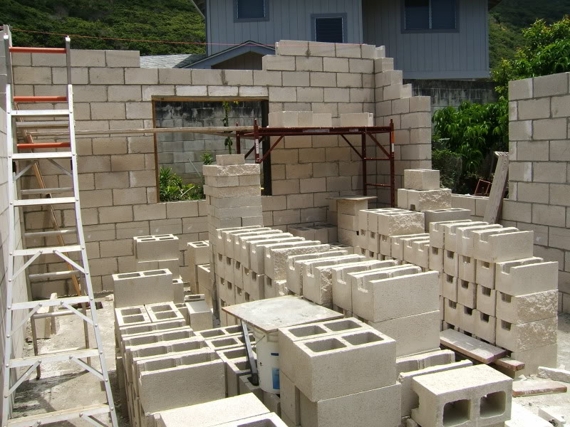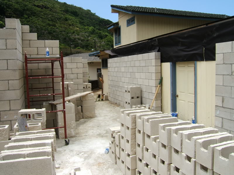 sturdy reinforced CMU block structure to compliment his existing single wall